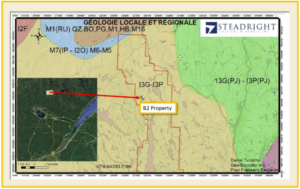 March 3rd, 2025 – Muskoka, Ontario – Steadright Critical Minerals Inc. (CSE: SCM) (“Steadright” or the “Company”) is pleased to announce that it has agreed to acquire 50% interest in 59 claims known as the B2 project in Saguenay-Lac-St-Jean Region of Québec, through a purchase agreement with Critical Foundation Metals Inc. for consideration of 1,600,000 common shares of Steadright Critical Minerals. Grab bag samples, taken independently, in October of 2022 on the B2 property yielded results with individual grades up to 3.19% Copper, 0.71% Nickel, 0.08% Cobalt and 7.25 g/t Silver